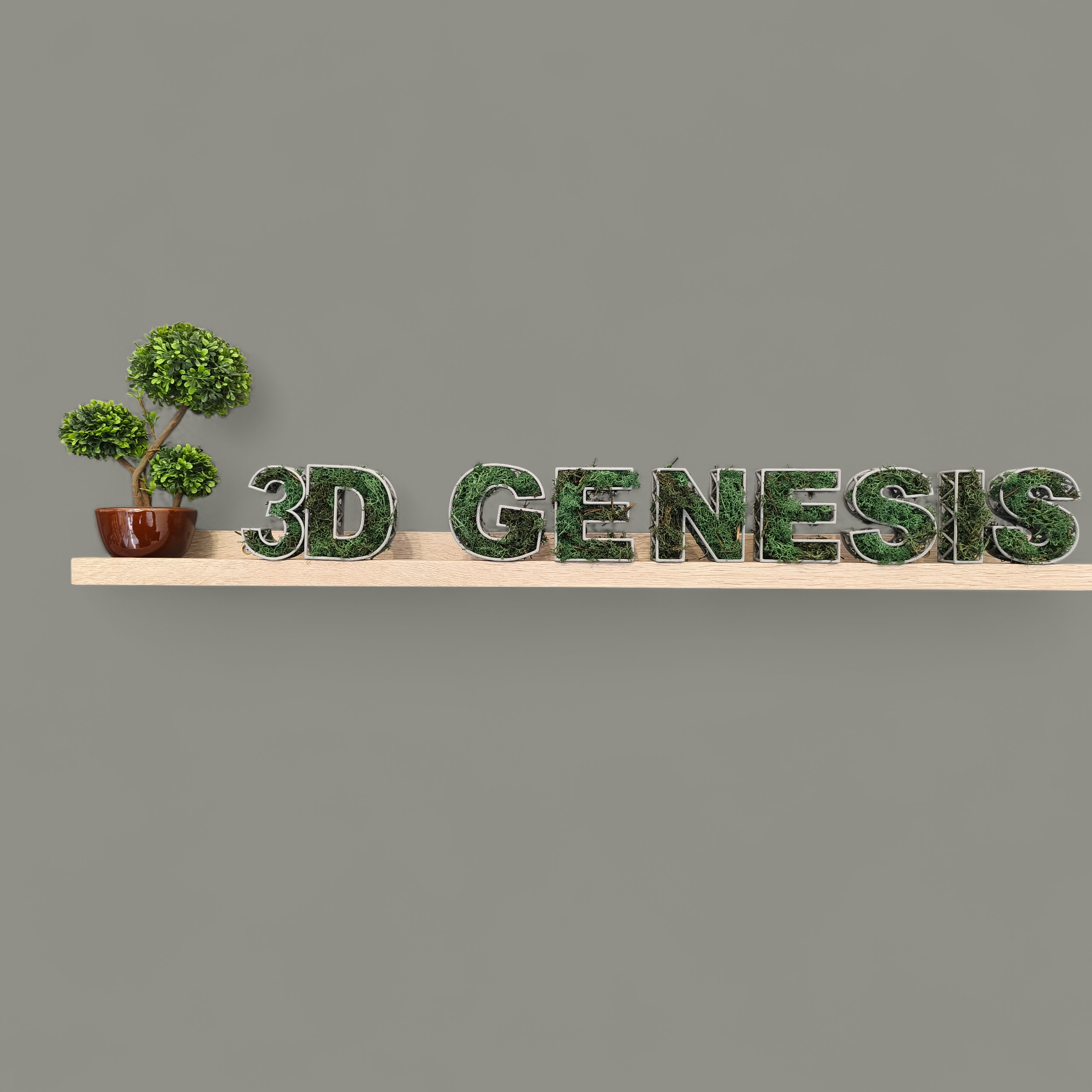 Αναβαθμίστε τον χώρο σας με ένα μοναδικό 3D διακοσμητικό γράμμα. Σχεδιασμένο σε μοντέρνο industrial στυλ και διακοσμημένο με φυσικής όψης moss (γρασίδι). Ο συνδυασμός του γκρι σκελετού με το πράσινο στοιχείο δημιουργεί ένα ιδιαίτερο αισθητικό αποτέλεσμα που ταιριάζει σε σπίτια, γραφεία, βιτρίνες καταστημάτων και επαγγελματικούς χώρους.