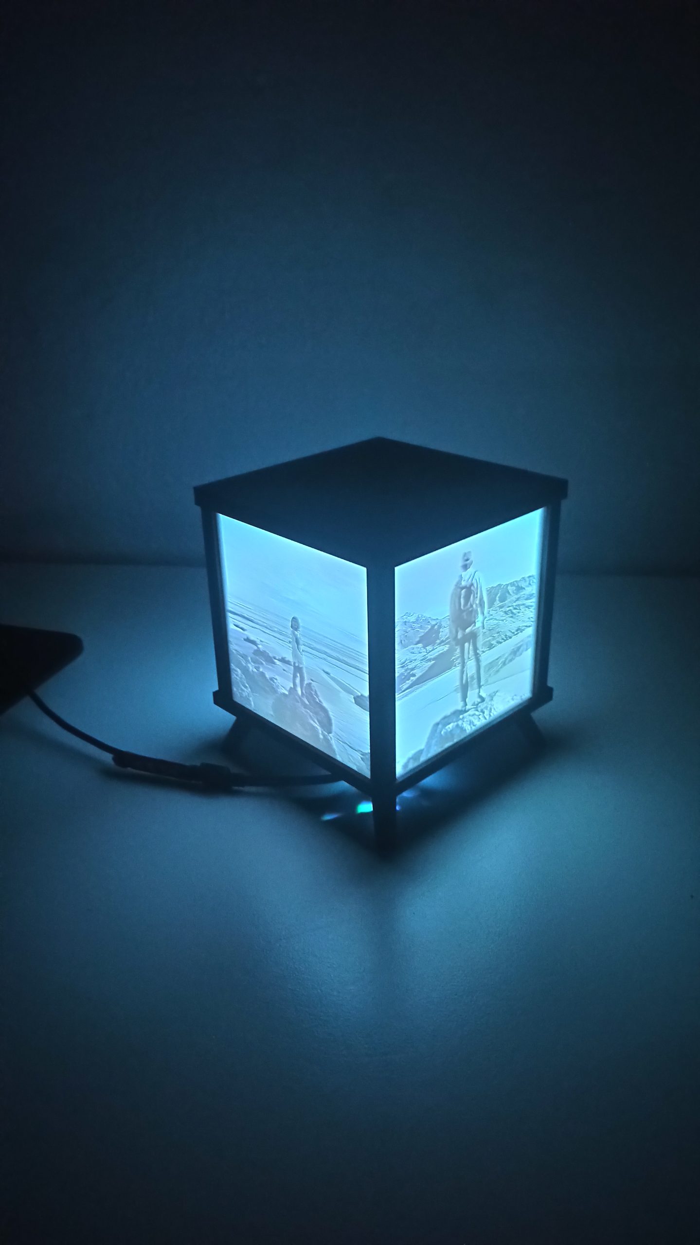 Η λιθοφάνεια σε σχήμα κύβου διαθέτει 4 πλευρές και σε κάθε πλευρά τοποθετούμε μία διαφορετική φωτογραφία. Όταν ανάβετε το εσωτερικό φως, οι εικόνες προβάλλουν με εντυπωσιακή λεπτομέρεια και βάθος.